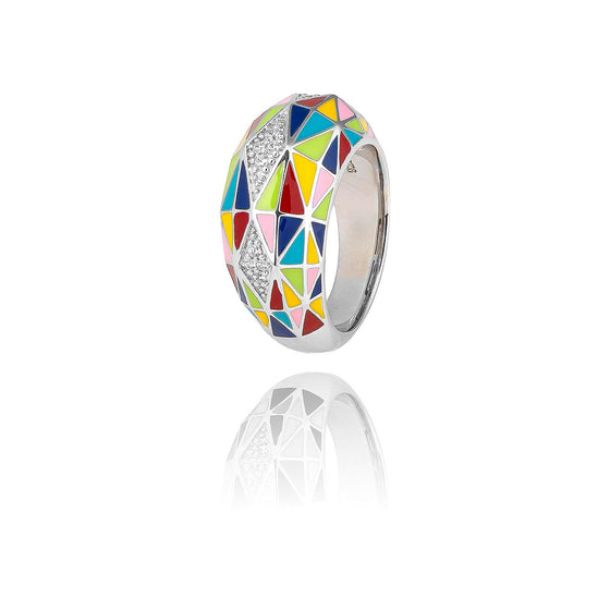 The Bora Bora 925 silver ring for women, crafted in sterling silver, embodies the essence of the seabed with colourful patterns and zirconium oxides stones. Each detail is meticulously hand-lacquered, capturing the light and colours of the corals. The shades of blue, green, yellow and red of the Bora Bora silver necklace and earrings set reflect the vibrant hues of tropical coral gardens. This 925 silver ring for women is perfect for the bold and creative woman who loves to express her unique personality through original jewellery. Treat yourself to a unique piece of French fine jewellery, original women's rings that tell a story and stand out for their creativity. 925 silver is appreciated for its shine and resistance to tarnishing, ensuring that your 925 silver ring for women will remain as beautiful as the first day. Whether for a special occasion or to add a touch of elegance to your daily outfit, the trendy ring for women is an ideal choice. You can find it in the large sterling silver ring for women collection.