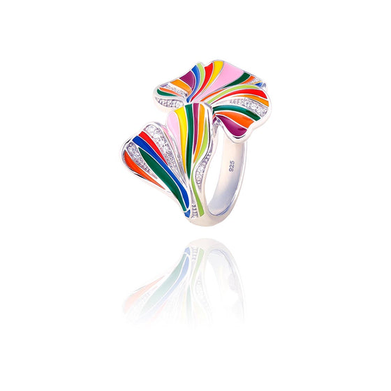 A symbol of resilience and harmony, the ginkgo inspires a jewellery creation in rhodium plated 925 silver with an asymmetrical composition. Its openwork volumes, enhanced with zirconium oxides, envelop the lines of the finger with precision. Designed for a woman in search of meaning, the silver ginkgo ring embodies artisanal excellence and the vision of contemporary design.