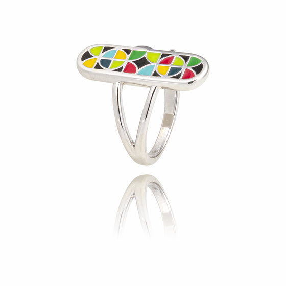 This original ring, featuring a multicoloured cartouche as a motif, recalls the history of ancient Egypt where similar lucky charm jewellery was found like those found in the pyramid of Pharaoh Khafre. The fine silver ring can be matched with the dangling silver earrings from the same collection to form a delightful set that flatters your overall look during an outing, a dinner or a ceremony. The original Roma ring still refers to the Italian capital, a must for its latest fashion and romantic creations. Also wear the very fine Una Storia women's bracelet, a very fine piece of jewellery that goes perfectly with this original green ring and is coloured with multiple other shimmering tones to brighten up the most classic of outfits and make it a rainbow of trendy and cheerful colours. You can pay for your order by credit card on a dedicated page that is completely secure or by PayPal if you prefer this method of payment. The Roma silver ring is guaranteed for two years, just like the other Una Storia jewels and can be returned free of charge for thirty days after receipt. It is packaged in a lovely box and arrives free of charge to the address of your choice by Colissimo 48 hours in France or 72 hours in Europe. Also think about the e-gift card if you prefer to let the person to whom you intend a present choose in our online store. The Roma silver ring is the witness of a past history reaching us to sublimate again and again the woman in all her splendor.