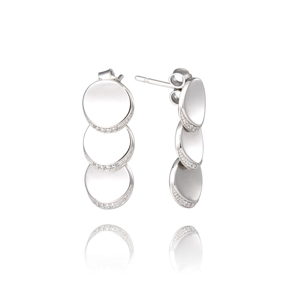 You're going to meet your sister or best friend to celebrate the most beautiful day of her life. For the occasion, wear these wedding dangling earrings from the new Una Storia collection of original silver jewellery for women for 2023. Three overlapping and slightly curved medals, set with zirconium oxides, make up these delightful original costume earrings. They will complete your outfit for this beautiful occasion, including a long, high-waisted wild silk dress, beige leather pumps with thin heels, and a matching clutch. You can add a pretty camellia or peony to the side of your chest to accentuate the romantic and delicate look of this beautiful, very feminine ensemble. Una Storia's rhodium plated sterling silver wedding dangling earrings can also be worn in other circumstances, whether for a dressy evening or simply for everyday wear when you're wearing a sweatshirt, jeans, and sneakers. Highlight your face by wearing them with very short or pulled-back hair. These wedding dangling earrings can also be a gift for a woman you care about. Order the gift bag and the box in which she can store them when she's not wearing them and slip the little box under the Christmas tree. When she discovers it, her eyes will light up with a thousand stars. You will find these silver jewels in the online section original silver earrings.