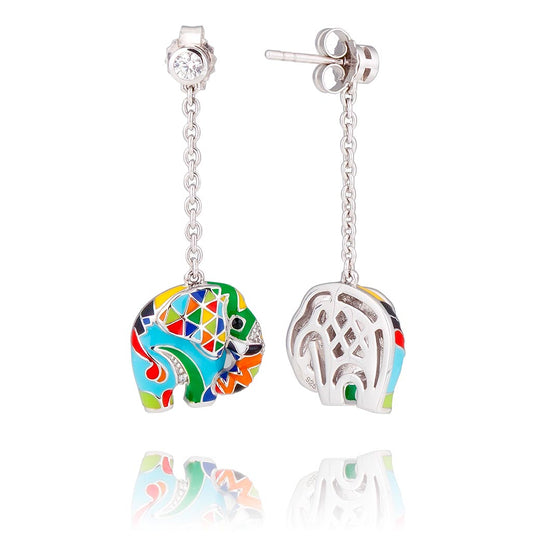 With their bold and richly nuanced design, the 925 silver elephant earrings illuminate the face. Sculpted volumes, hand-lacquered shades, and zirconium oxides combine to reveal an expressive and luminous piece. Every detail reflects the jewellery's expertise, between the balance of shapes, the brilliance of silver, and the setting of zirconium oxides.