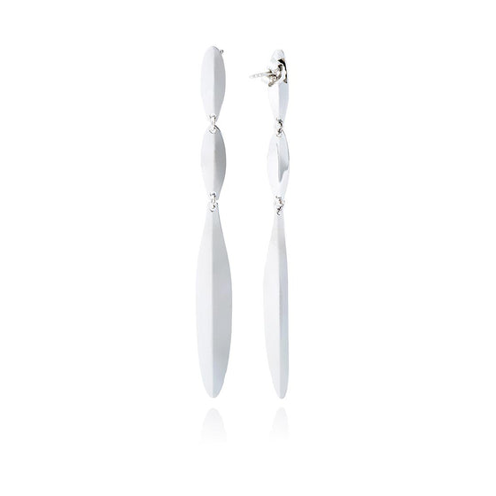 This piece of jewellery features a minimalist design inspired by nature. The slender shape of the 925 sterling silver olive leaf earrings accentuates the wearer's posture and highlights the purity of the silver. Versatile and elegant, they easily complement any look.