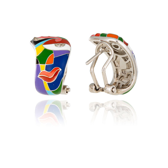 The Malaga Una Storia colourful silver earrings can be complemented by the eye ring from the same collection to enhance an outfit in very bright and joyful tones, such as a spring dress whose blue recalls the soft sky of a beautiful day. If you wish, you can also add to your outfit the Malaga silver pendant worn at the end of a dark blue oiled cord from our dedicated section. These colourful earrings in hand-lacquered sterling silver are the flagship of the original women's earring, as they are composed of anarchic geometric lines partitioned in shiny lacquer in multiple joyful tones from this beautiful new Una Storia collection. Remember to put on your wrist the 925 silver women's bangle to match these colourful earrings, very trendy this year. All Una Storia jewellery is delivered free of charge within 48 hours to the address of your choice. They are all guaranteed for two years and can be returned at no additional cost for 30 days. Enhance your look with these Una Storia eye earrings while accentuating your mysterious air.