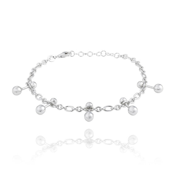 This women's silver spherical bracelet captivates with its understated and contemporary design. Designed to rest lightly on the wrist, it plays on the balance and movement of the spheres thanks to its carefully crafted structure. An easy-to-wear piece, suitable for both everyday wear and more formal occasions.
