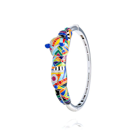 This women's animal-print bangle features a secure snap clasp, ensuring comfort and a secure fit all day long. The Panda bangle 's clasp allows you to wear the bracelet every day without the risk of losing it and easily adjusts to all wrist sizes.