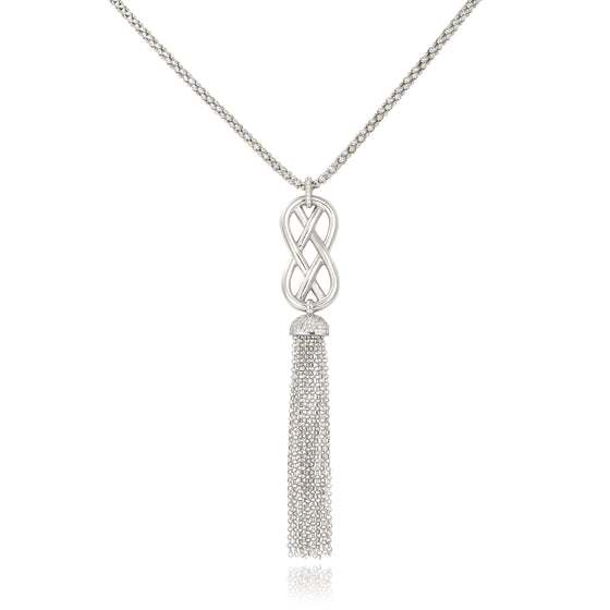 Do you appreciate rounded shapes and jewellery with intertwined lines reminiscent of infinite spaces ? Una Storia has you covered with this Comète 925 sterling silver tassel necklace, a new addition to its collection of rhodium plated 925 sterling silver jewellery for women. A high-quality sterling silver necklace.