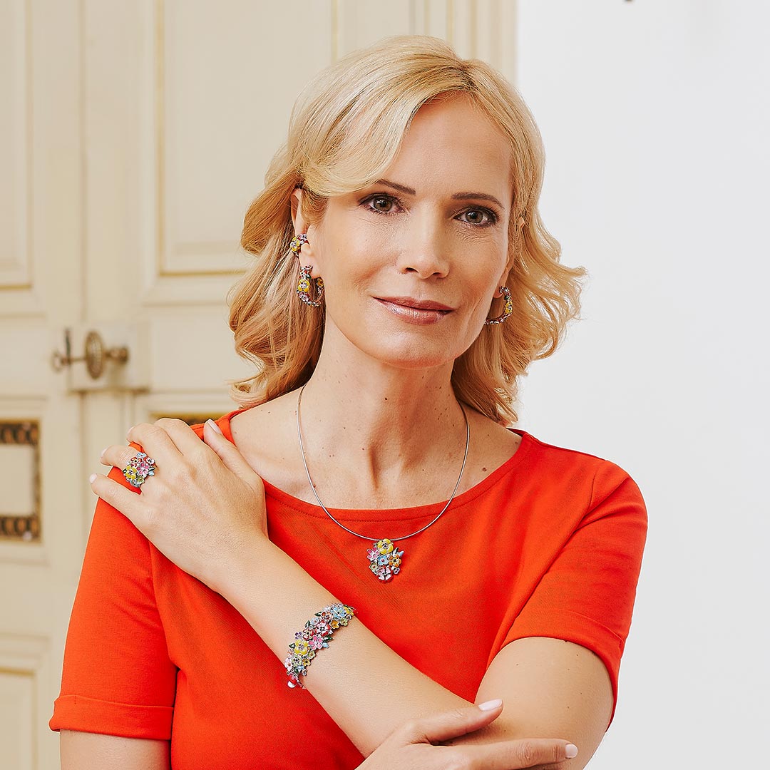 The wedding cuff is a declaration of love and a celebration of the bold and elegant woman. It is the ideal gift to mark an important event such as a wedding by bringing a touch of colour to this festive period. Offering this bangle is offering an eternal floral bouquet that highlights the wrist, a unique piece that will illuminate the person who receives it. For a wedding anniversary, the wedding cuff is a refined option that will seduce with its imposing design and bright colours. Imagine her wonder when discovering this bracelet inspired by the exotic flowers of Madeira or the summer necklace for women from the same collection. The Madeira floral bangle is also an elegant choice for a bridesmaid or a wedding witness. Offer it to a close friend or a sister who loves original jewellery. The Madeira collection of the French jeweller also includes silver flower hoop earrings created in the same spirit of flower patterns. Whether for an exceptional gift or to enrich your personal collection, this wedding cuff from the colourful summer jewellery set will delight lovers of original jewellery.