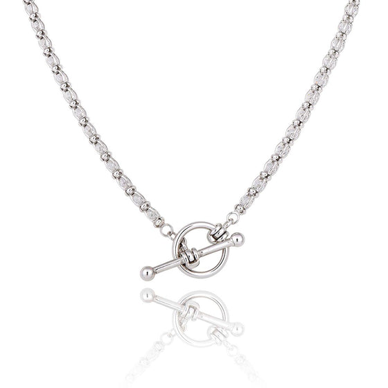 Discover the radiant beauty of this silver sautoir necklace with a T-clasp from the Firenze Una Storia collection. Designed for the modern woman who loves bold designs, the Firenze necklace, with its curb chain, stands out for its striking and sophisticated look.